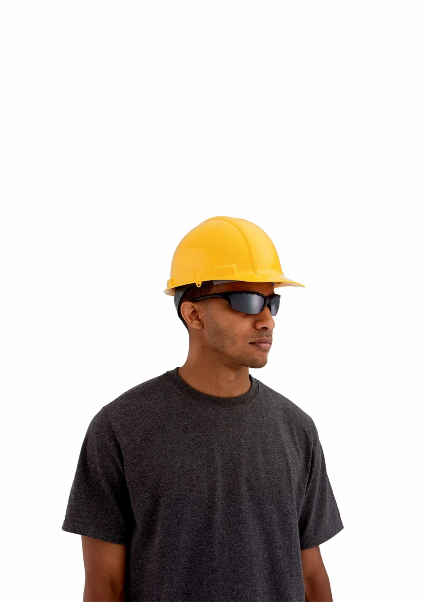 - Yellow, low profile hard hat for improved stability and balance