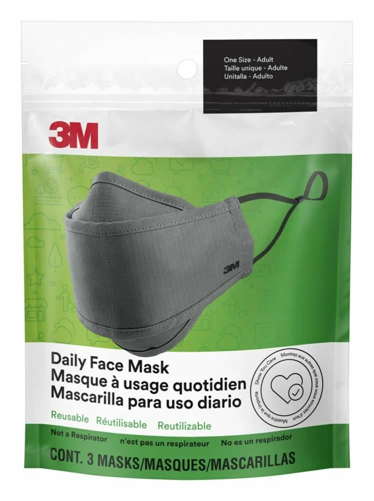 3M Respiratory Protection Daily Face Mask 3-Pack Gray Reusable Not Rated One Size Fits Most All-purpose Face Mask