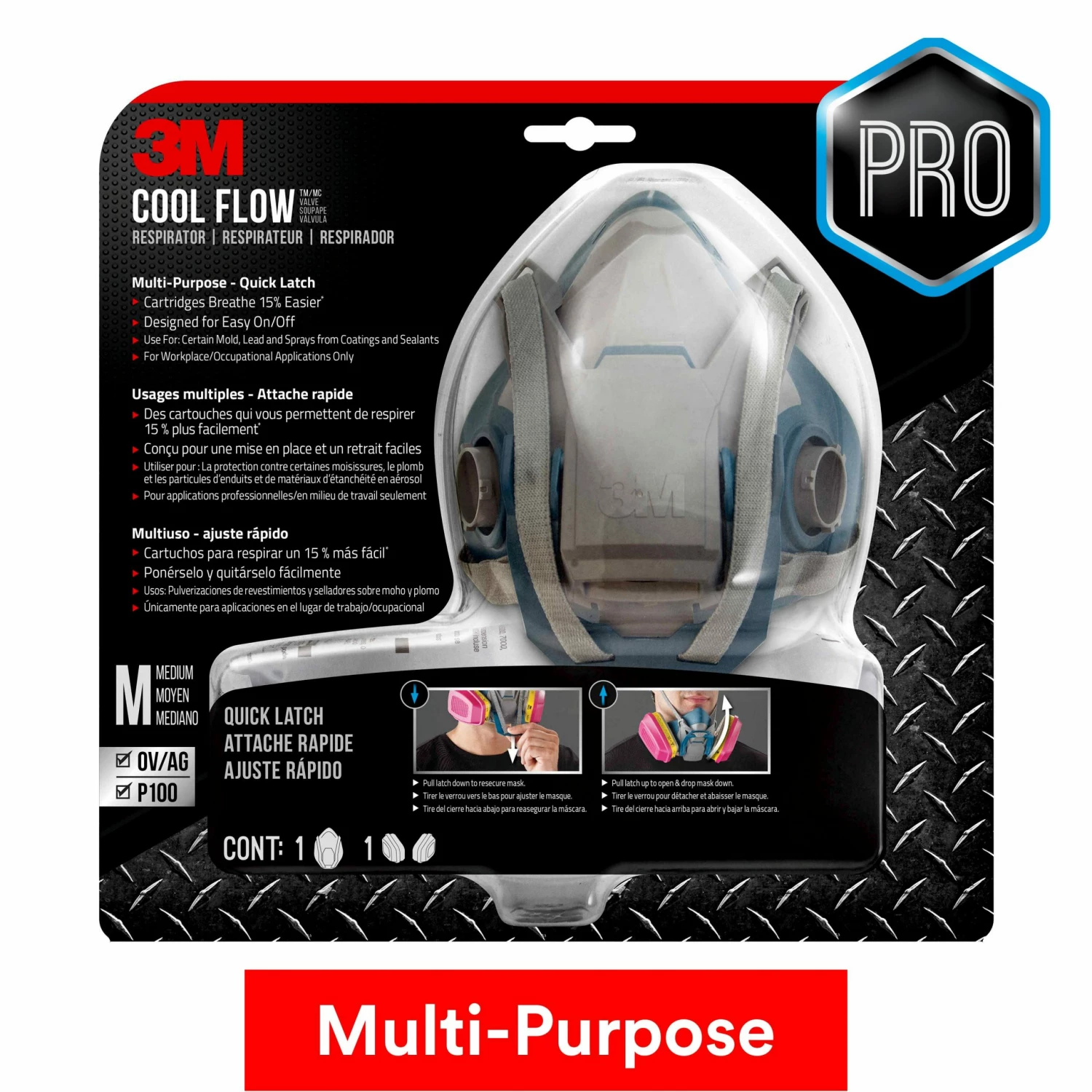 With a convenient quick latch and proprietary 3M™ Cool Flow™ Valve technology for cool comfort, the Pro Multi Purpose Respirator with Quick Latch helps you stay productive and protected. So you can keep your cool on the job. Part of the 3M™ Pro Series Safety Products line that was designed for the way pros think, the way they shop and the way they work