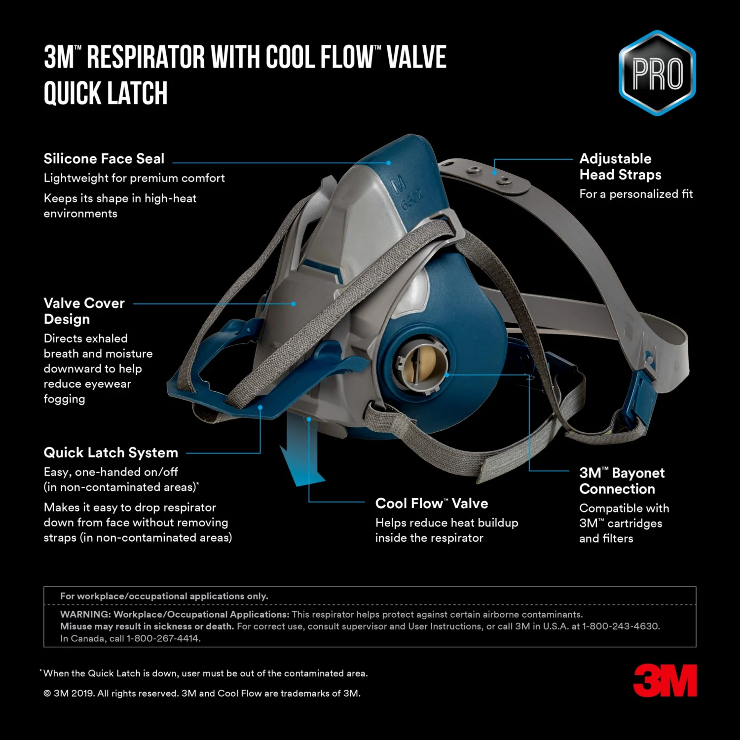 - With a resilient silicone faceseal providing comfort, durability, and stability – the 3M Pro Multi-Purpose Respirator with Quick Latch is an excellent choice in respiratory protection for the professional
