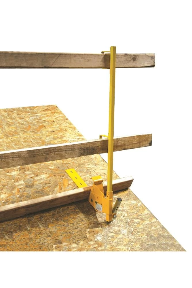 The residential guardrail system is a specialized bracket and guardrail assembly intended for steep roofs of pitches from 6/12 to 16/12. This versatile and lightweight system is easy to install and remove, and is compact for convenient storage. Composed of powder-coated steel, it is designed for superior durability and weather resistance. 2×6” toe boards are required for use with the residential guardrail system, and must be installed according to equipment instruction specifications.