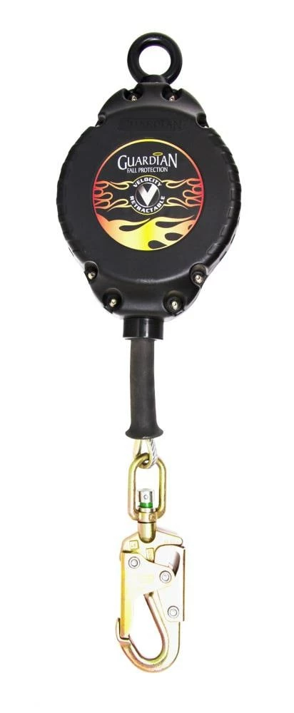 The Velocity SRL series from Guardian Fall Protection includes models with lengths ranging from 10’ – 100’, and is manufactured with heavy-duty galvanized cable. Velocity SRLs feature swivel tops and swivel snap hooks, as well as lightweight and durable glass-filled nylon housing.