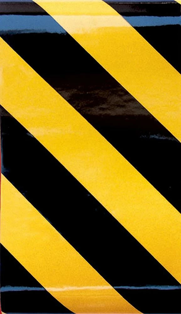 Reflective safety tape marks designated areas in a premise. It helps highlight important spots, alert people to objects up ahead, or warn of potential dangers. The reflective tape ensures high visibility from a distance.