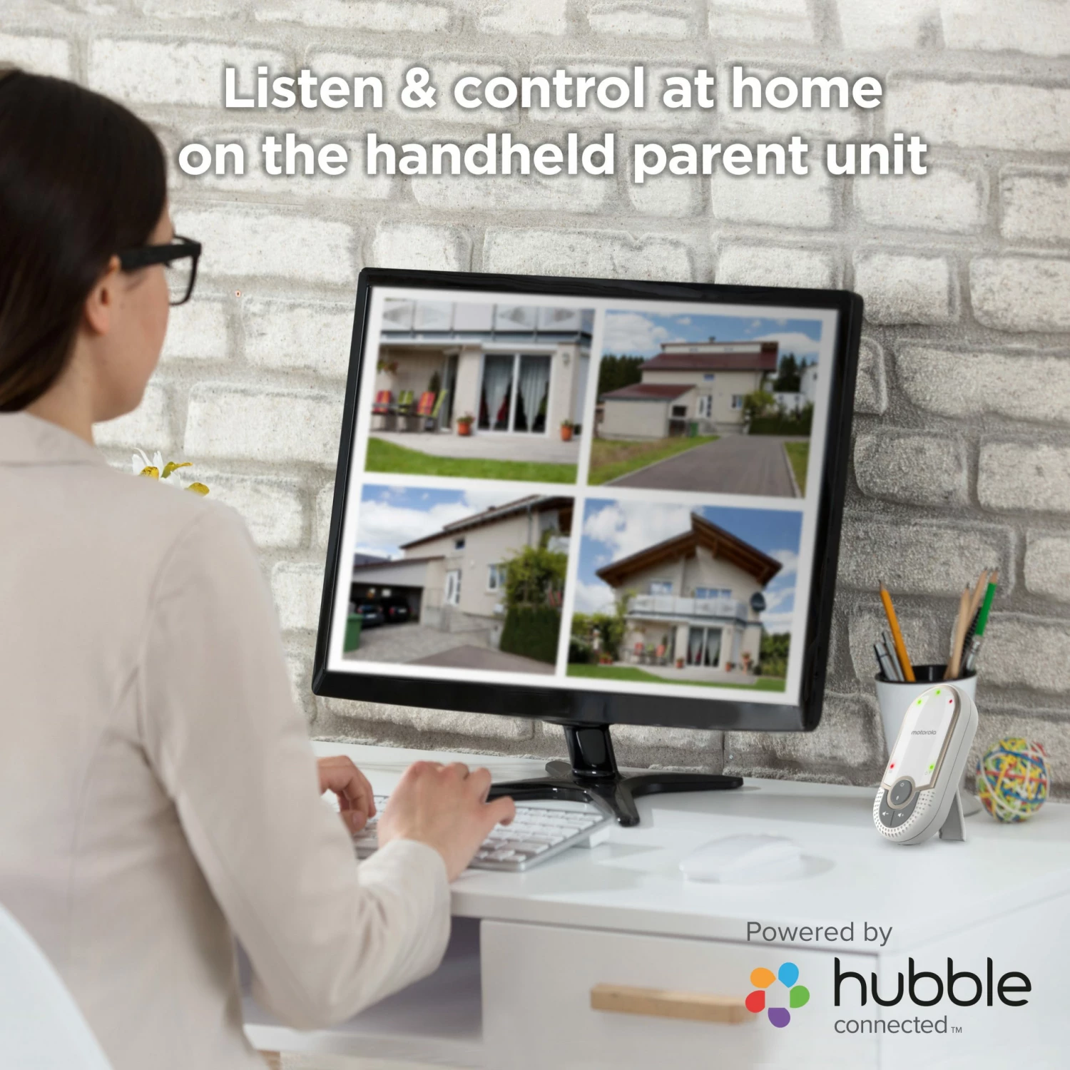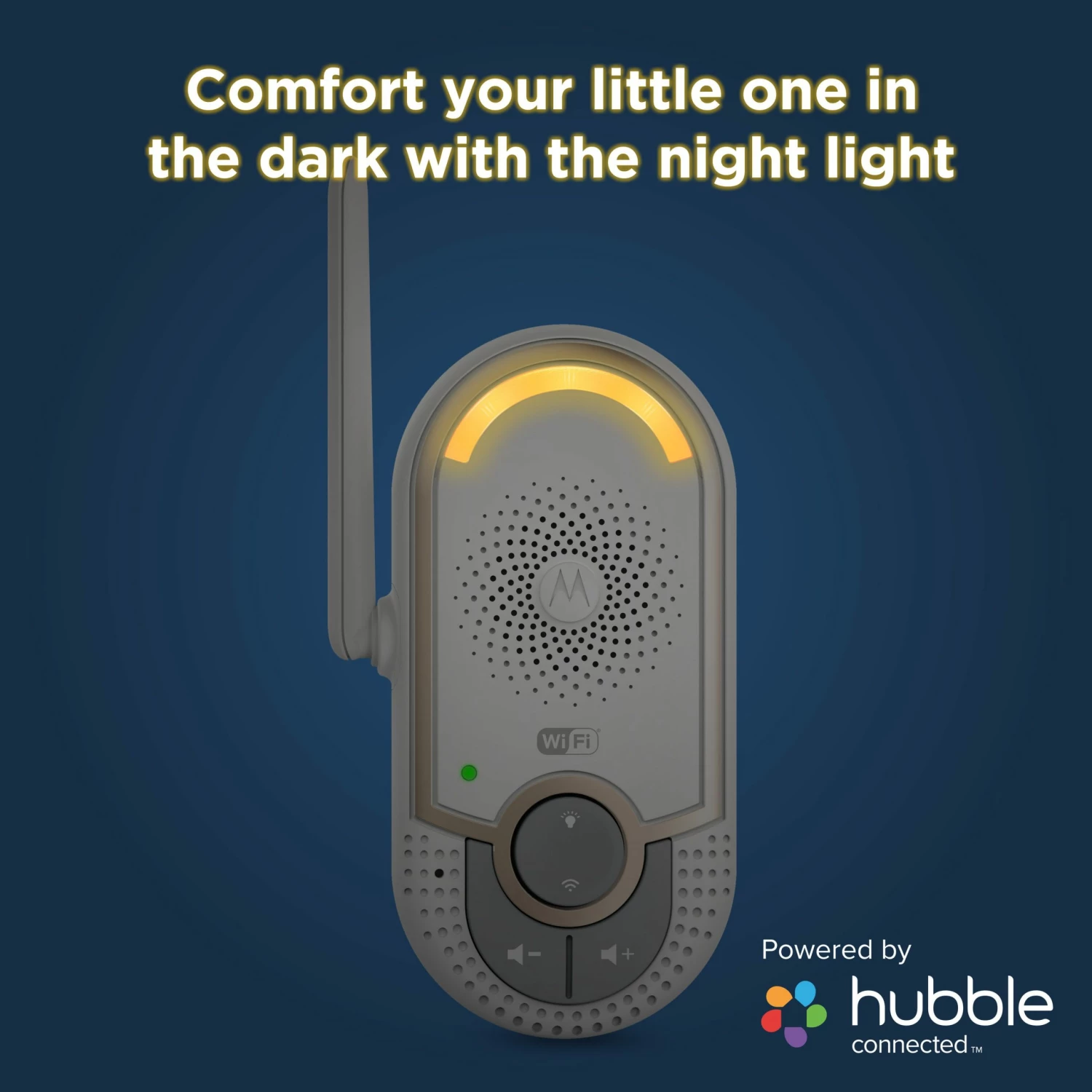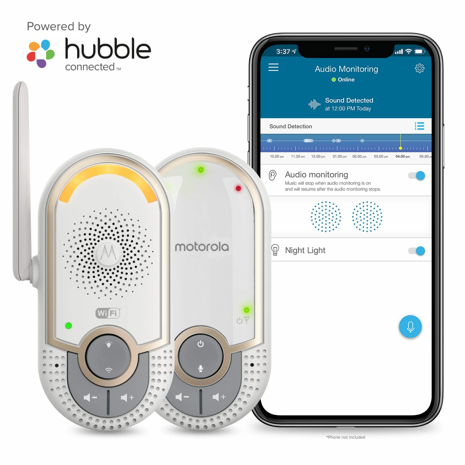 Never miss a peep from your little one, wherever you are, with the Motorola All-in-One Smart Monitor and Intercom. Simply plug this Wi-Fi audio monitor into an outlet in your nursery and listen via the handheld parent unit, or download the Hubble app to your compatible smartphone or tablet and listen to your child from anywhere in the world. Soothe your little one when they’re upset with the two-way communication feature and give them peace of mind in the dark with the baby unit’s night light. Plus, sound activity tracking shows you when your baby is quiet and when they’re noisy, helping you better understand their sleeping patterns. Motorola All-in-One Smart Monitor and Intercom. Monitor at home or from anywhere.