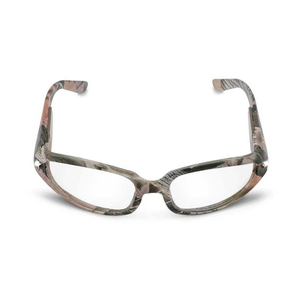 Our LIGHTSPECS Predator LED Lighted Safety Glasses combines ANSI Z87.1-2010 rated, impact resistant lenses, with stylish Camo safety glasses and ultra-bright LED’s to provide the perfect safety accessory for any do-it-yourself project. The LED’s are concealed in the temples and provide more than 24 Lumens of light. The LED’s are canted inward to shine the light exactly where you need it without leaving any dark spots. Batteries Included.