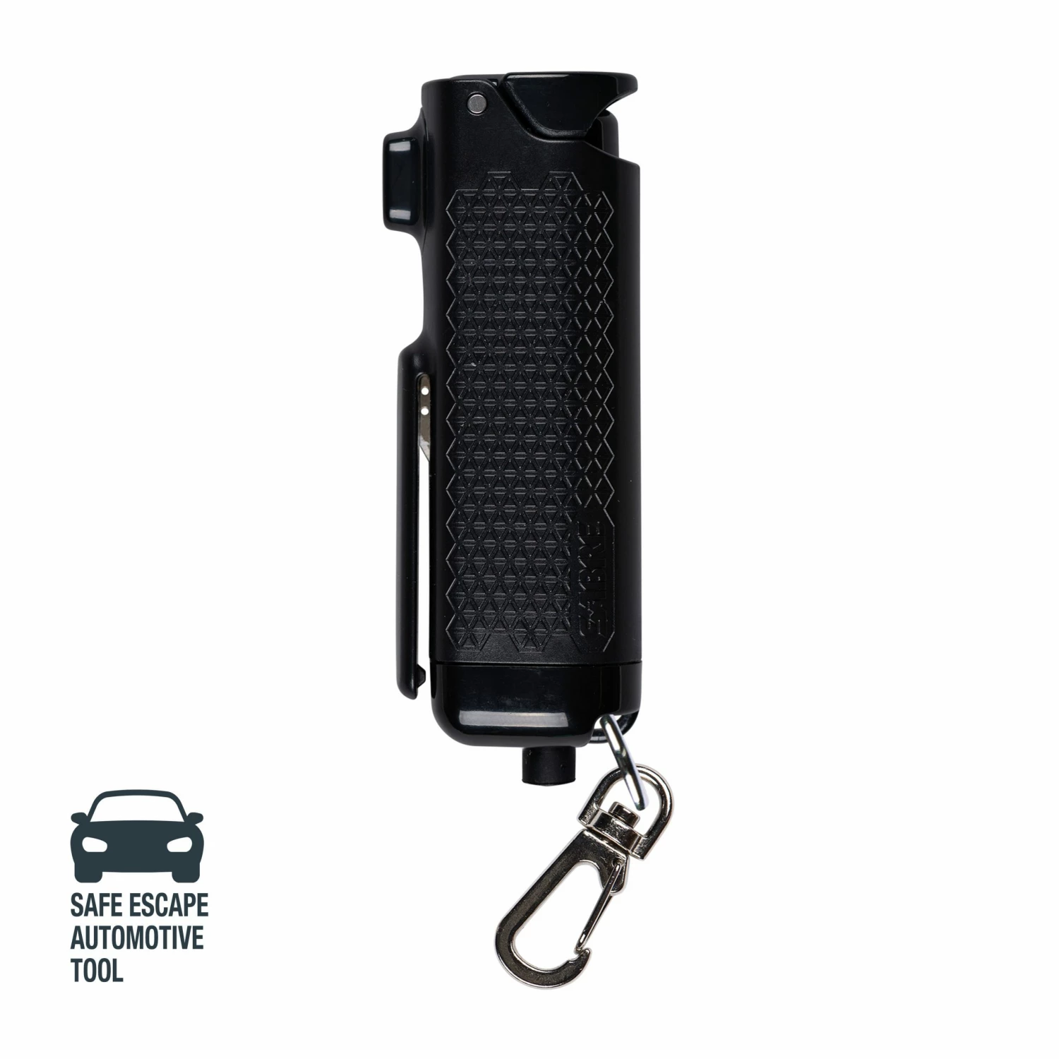 The SABRE safe escape 3-In-1 pepper gel contains a belt cutter and a window breaker for vehicle emergencies. Pepper gel contains 25 bursts (5x the competition), has a 12-foot (4 meter) range and contains UV marking dye. Flip top safety. Black color.