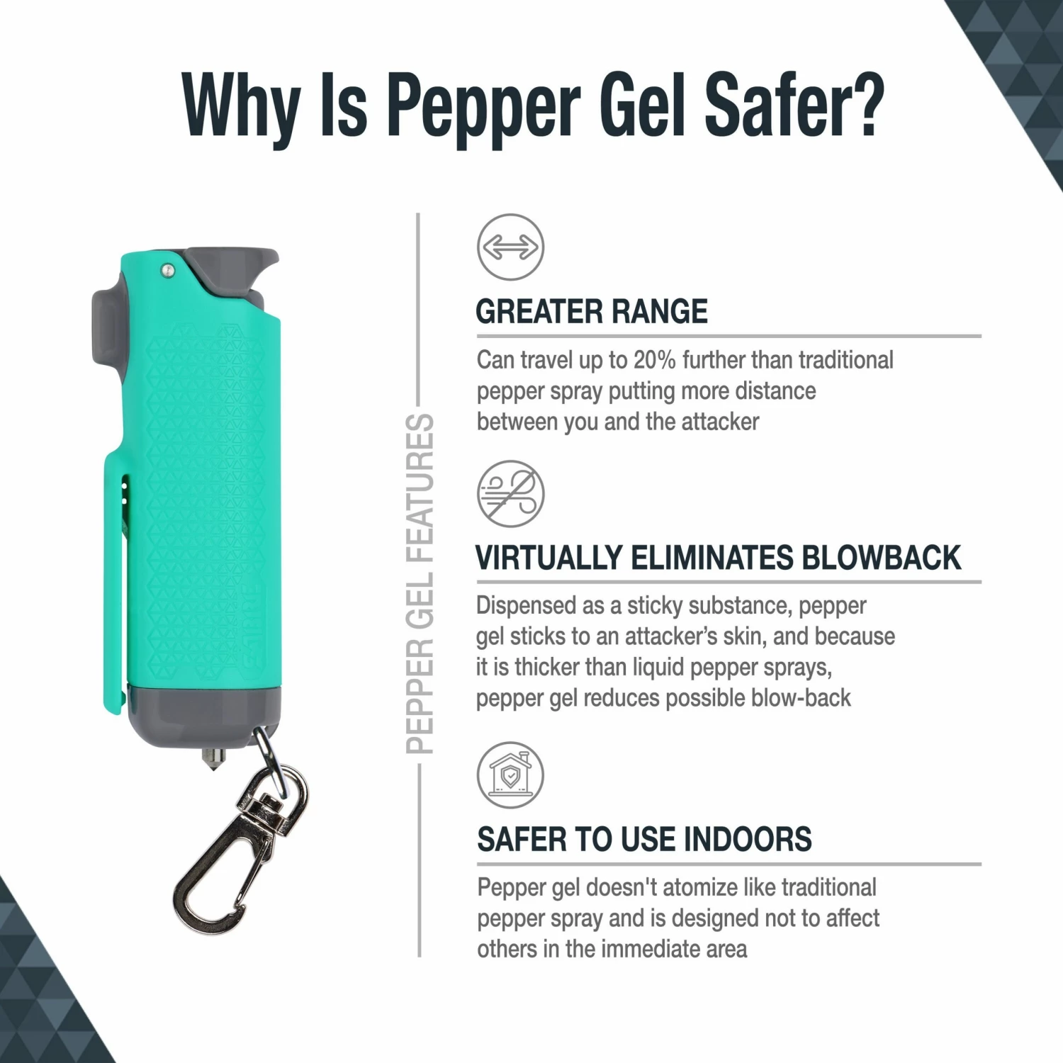 - Gel is safer as it contains 25 bursts for protection against multiple threats with a 12 foot, 4 meter, range that provides protection at a safer distance