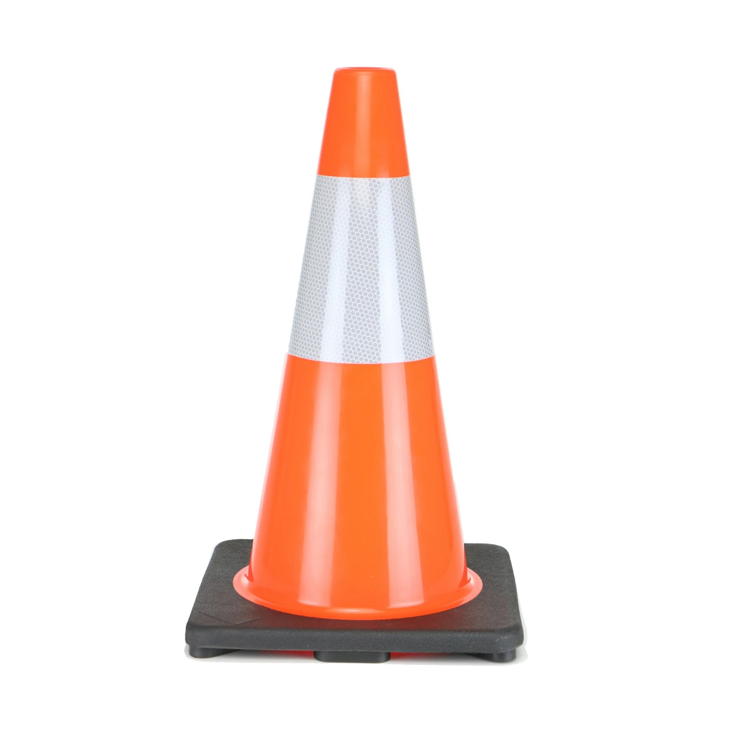 Bright Orange Traffic Safety Cones come with UV inhibitors to prevent fading in the sun. The injection molded engineering creates a more durable cone. This cone is 18-in and has reflective tape for added safety.