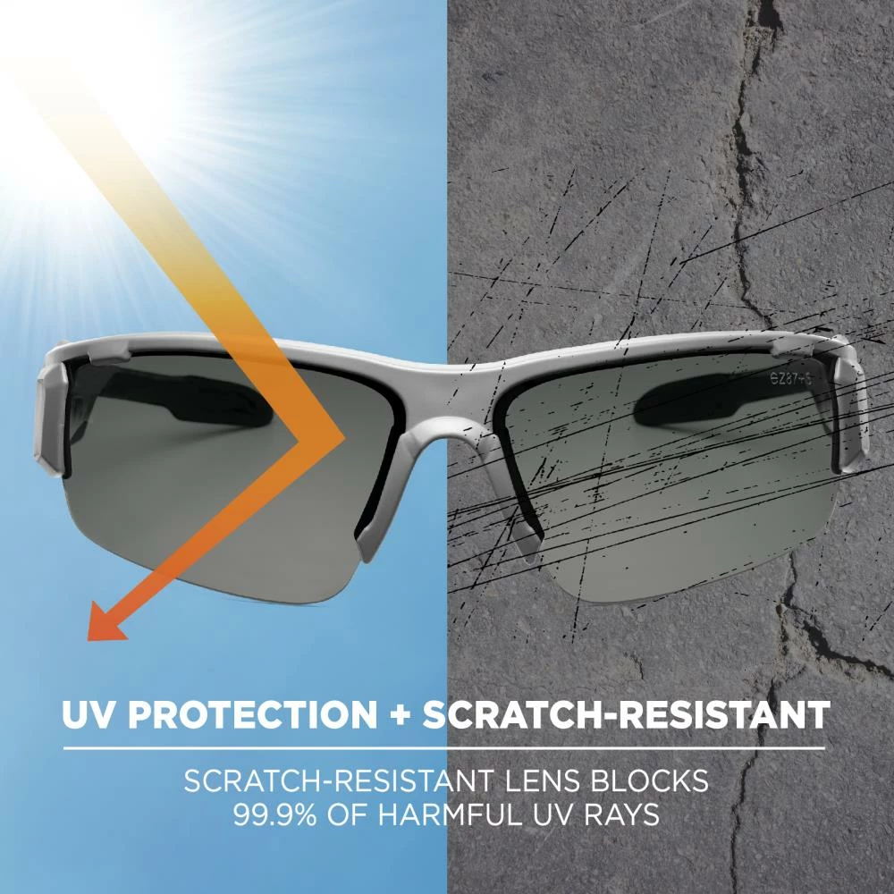 | Package Contents | Ergodyne Skullerz Dagr Safety Glasses/Sunglasses, Matte Gray, Anti-Fog Smoke Lens |
