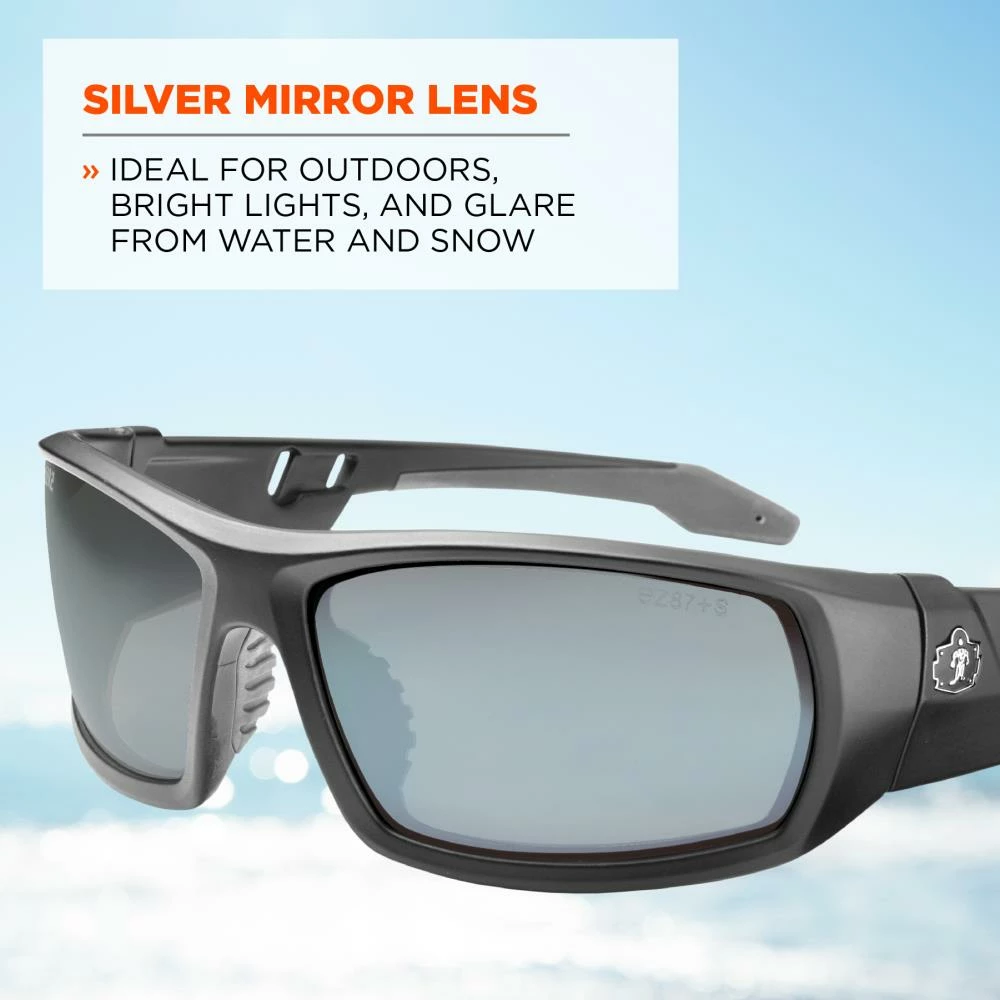 | Package Contents | Ergodyne Skullerz Odin Safety Glasses/Sunglasses, Matte Black, Silver Mirror Lens |
