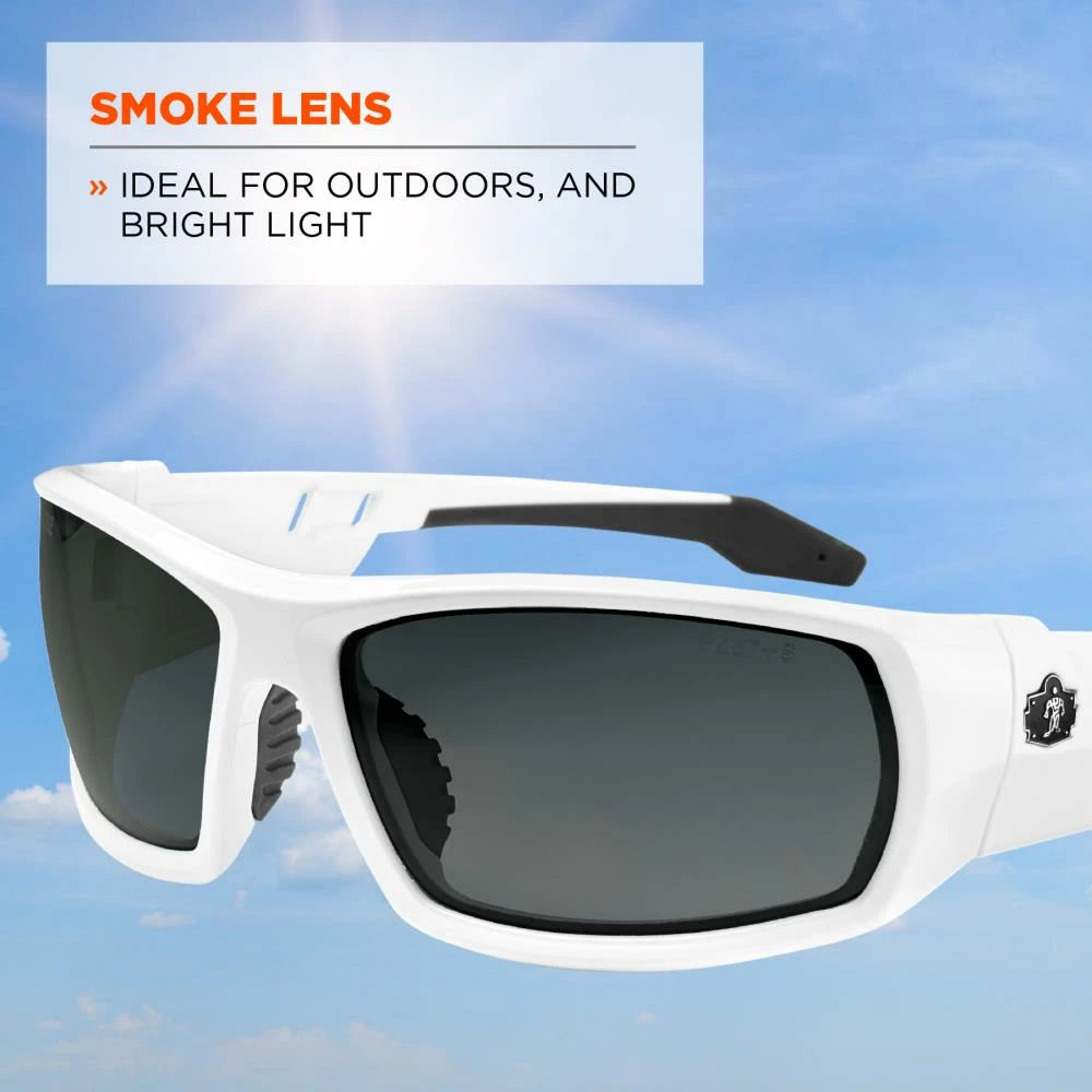 | Package Contents | Ergodyne Skullerz Odin Safety Glasses/Sunglasses, White, Smoke Lens |