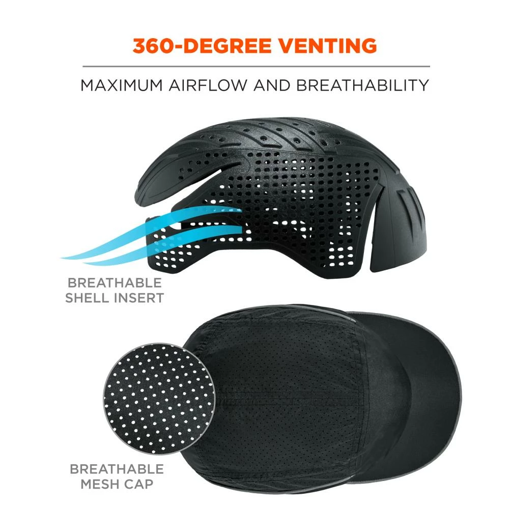 - 360 Degree venting – strategically placed venting all over the hat allows extreme airflow between the worker’s head and the bump cap