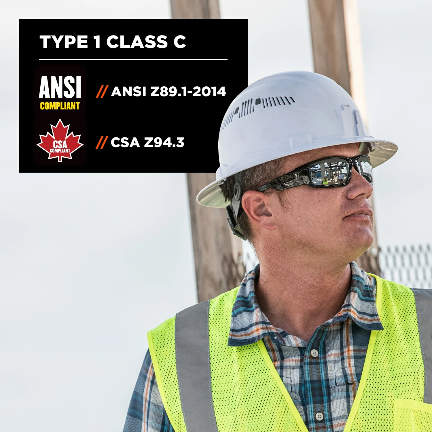 - Tested and approved – ANSI Z89.1-2014, CSA Z94.1-15, type 1, class C