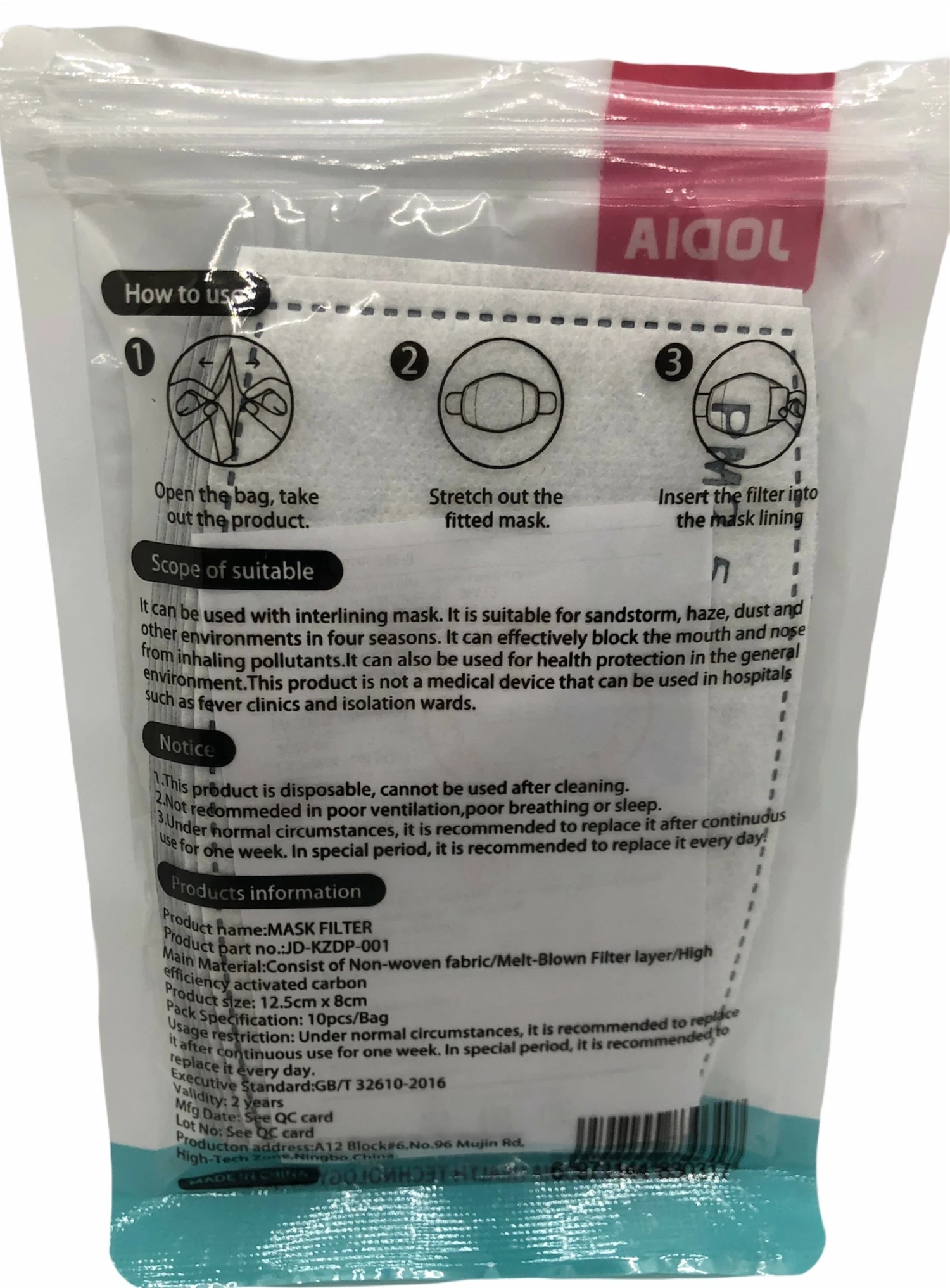 Our 5-layer PM 2.5 disposable filter is ideal to help protect from PM 2.5 and a range of airborne contaminants. Each bag contains 10 disposable non-medical filters that can be inserted into a wide range of interlining masks. Under normal circumstances, it is recommended to replace it after a week of continuous use. Outside of normal use, it is recommended to replace it every day.
